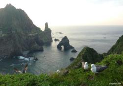 독도는 주로 두 개의 섬으로 이루어지며 150 미터 떨어진 두 섬은 동도와 서도로 불린다. 약 90개의 섬과 암초로 이루어진 신생대 화산암으로 구성되어 있다.독도는 동경 약 131゜52′ 위도 약 37゜14′에 위치한다. ..생략